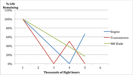 As you can see from the chart above, not every component depreciates over the same amount of flight time. A series of formals is used to determine the average of all the components' percentages used at any point during its life, allowing the helicopter to be accurately measured against comparable sales, offerings, and pending contracts.